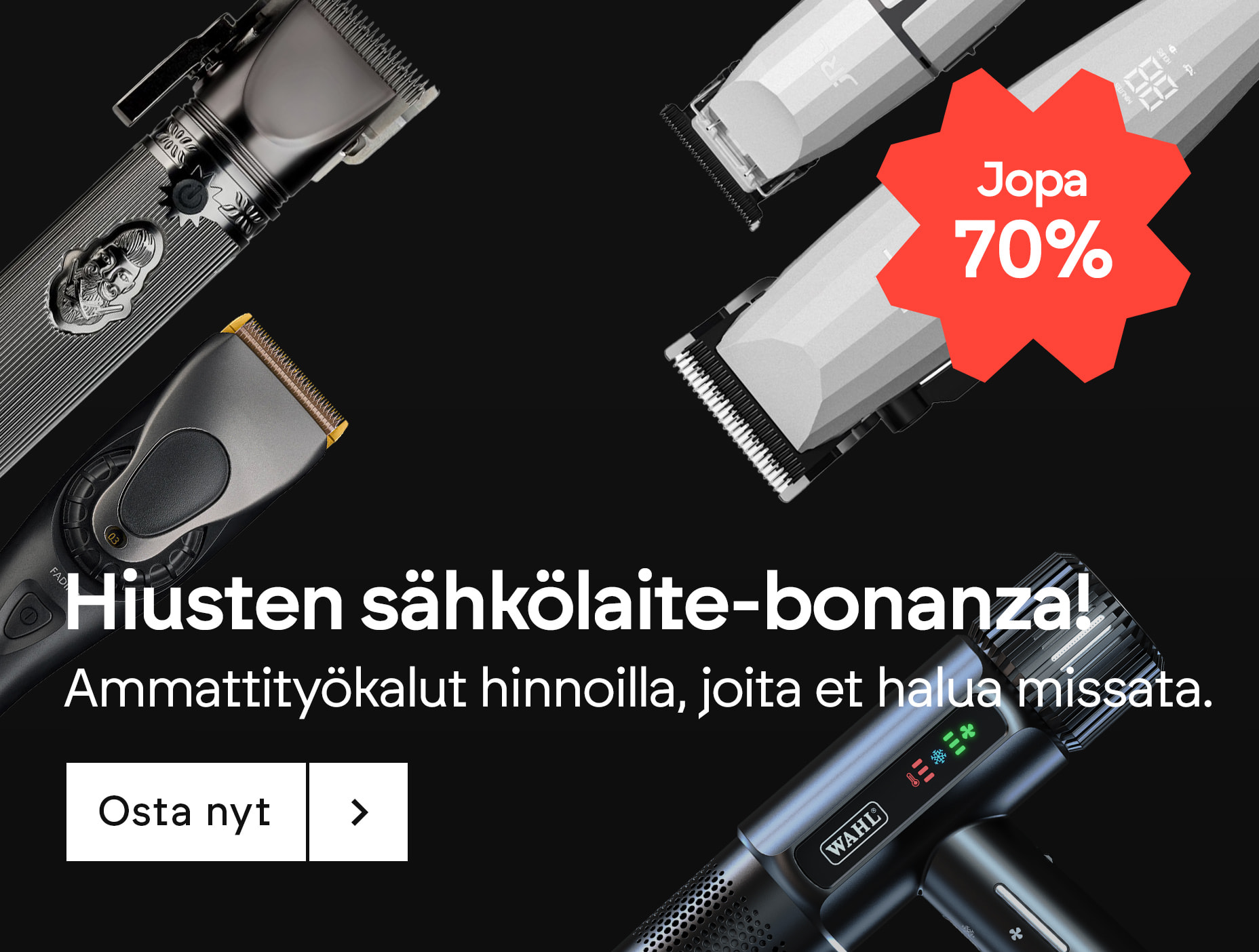 Laadun ei tarvitse olla kallista. HeadBrandsilla pyrimme tarjoamaan sinulle parasta mahdollista vastinetta rahalle jatkuvilla tarjouksilla ja alennuksilla. Vieraile verkkosivustollamme säännöllisesti, ettet jää paitsi eksklusiivisista kampanjoistamme, joissa on edullisia hintoja kaikesta kampaamotyökaluista shampooseen.